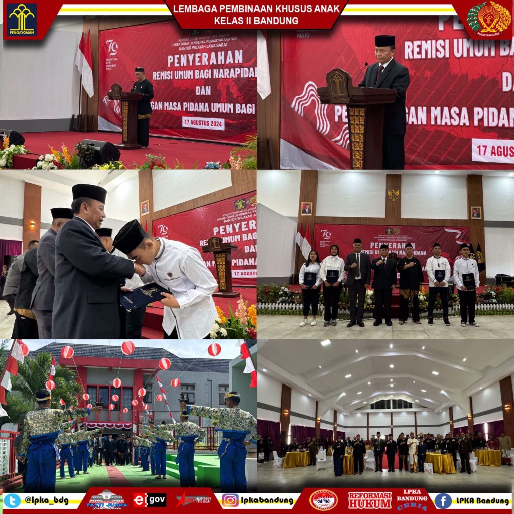 Dalam rangka memperingati Hari Ulang Tahun (HUT) Kemerdekaan Republik Indonesia yang ke-79, Lembaga Pembinaan Khusus Anak (LPKA) Kelas II Bandung mengadakan serangkaian acara istimewa pada 17 Agustus 2024. Kegiatan ini diawali dengan upacara bendera yang digelar di pagi hari dan dilanjutkan dengan pemberian remisi bagi anak binaan pada siang harinya.