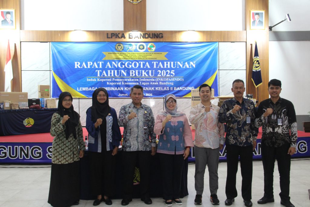 Bandung – Lembaga Pembinaan Khusus Anak (LPKA) Kelas II Bandung mengikuti kegiatan Rapat Anggota Tahunan (RAT) yang dirangkaikan dengan penerimaan Sisa Hasil Usaha (SHU) dari Induk Koperasi Pemasyarakatan Indonesia (Inkopasindo) Pada 23 Januari 2026.