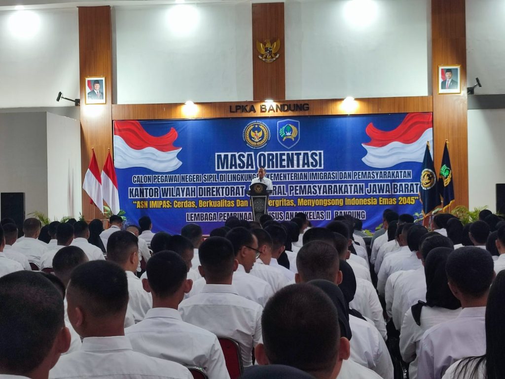 Pada hari senin, 02 Juni 2025 Sebanyak 290 orang CPNS TA 2024 mengikuti kegiatan Orientasi di Lingkungan Kanwil Ditjen Pemasyarakatan Jawa Barat yang dilaksanakan di LPKA Bandung dan dibuka langsung oleh Kepala Kanwil Ditjen Pemasyarakatan Jawa Barat. Dalam kegiatan orientasi ini, para CPNS dibekali dengan berbagai materi tentang budaya kerja, kode etik, dan tugas pokok serta fungsi pemasyarakatan. Mereka juga diberikan kesempatan untuk berbagi pengalaman dan berdiskusi dengan para narasumber yang berpengalaman. Kegiatan ini bertujuan untuk membentuk karakter dan kesiapan awal bagi para CPNS sebelum menjalani tugas kedinasan.